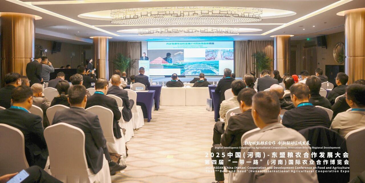 刘晓文向莅临会议的国内外来宾表示欢迎,向长期以来关心支持河南发展的各界朋友表示感谢,并以大牧场、大基地、大厨房、大市场为关键词对全省畜牧业进行了推介。一是大牧场。河南畜牧业历史传承“久”,是中国畜牧业起源地之一;饲草根基“牢”,常年农作物秸秆总量在1亿吨左右;产业集群“优”,拥有省级以上畜牧产业化龙头企业348家,省级以上畜牧产业园18个,国家级畜牧产业集群、畜牧产业园各3个。二是大基地。2024年河南省畜牧业产值达2610亿元,占全省农林牧渔业总产值1/4;全省肉蛋奶总产量1337万吨,约占中国总量的1/12;生猪饲养量超1亿头。三是大厨房。河南生猪、家禽、肉牛年屠宰加工能力均位居全国前列,已打造国家级农业品牌45个、省级知名农业品牌1479个,生产了全国1/2的火腿肠,7/10的水饺。四是大市场。河南自身近1亿人口,铁路运输3小时内覆盖中国53%以上人口,航空运输2小时内覆盖中国87%以上人口,市场空间巨大。河南与东盟资源各有优势,市场各有需求,合作基础好,需求匹配度高,希望下一步共同努力推动河南与东盟的合作从畜产品贸易“单点突破”,迈向种业、科技装备、人才培养等全产业链深度融合“全面开花”。